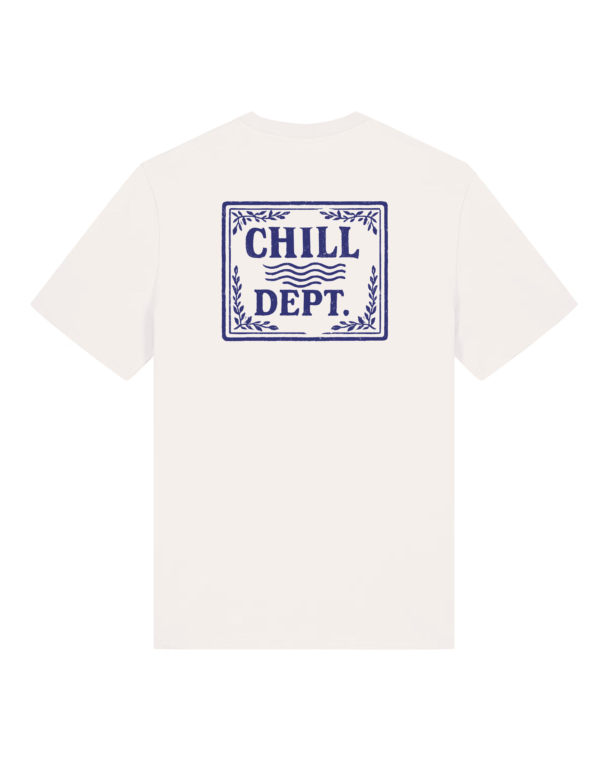 Life’s always on loud — pings, plans, people talking over each other. Chill Dept. keeps it simple: a soft organic tee that stamps your place in the calm, even if the rest of the world’s still buzzing.
