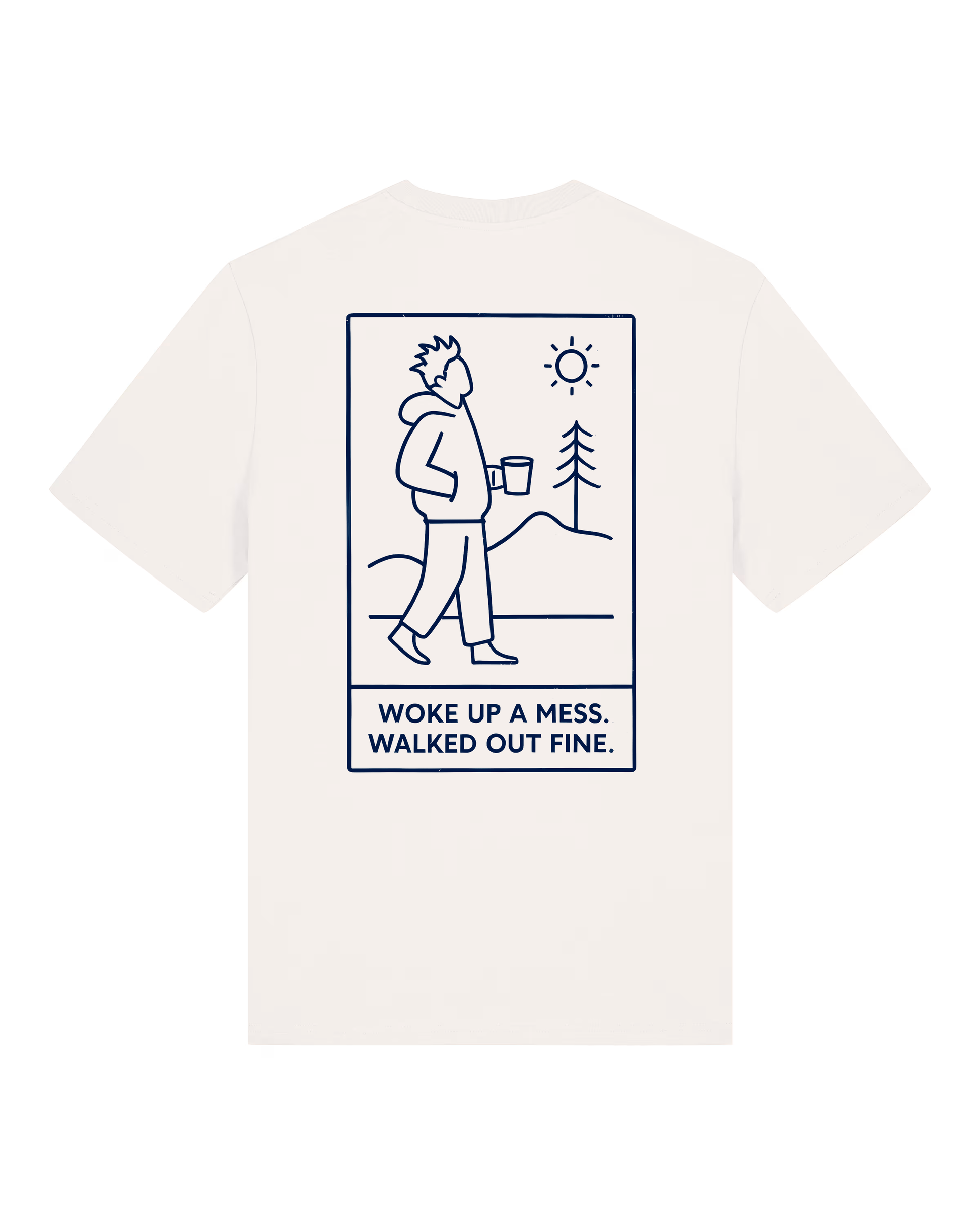 Mornings don’t always start clean. Some days you wake up foggy, stressed, or running behind. Woke Up a Mess. Walked Out Fine. is a soft organic cotton tee with a simple line print that reminds you moods don’t last — even a walk with a cup in hand can flip the day.